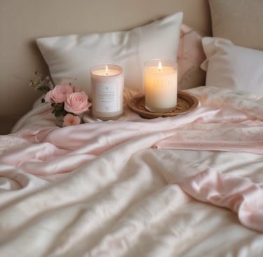 La lumière est tamisée, chaude, presque poudrée. Une bougie s’allume, lentement.